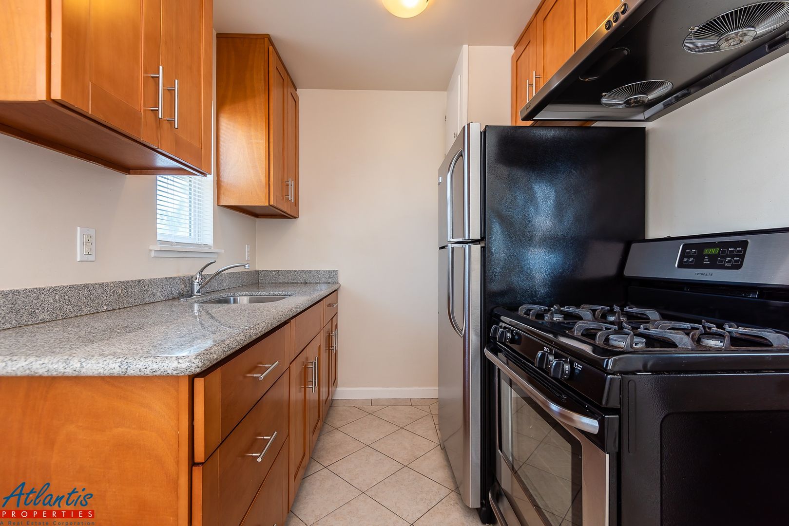 - Eat-In Kitchen Includes Shaker Cabinets, Granite Counters, Refrigerator & Gas Range/Oven