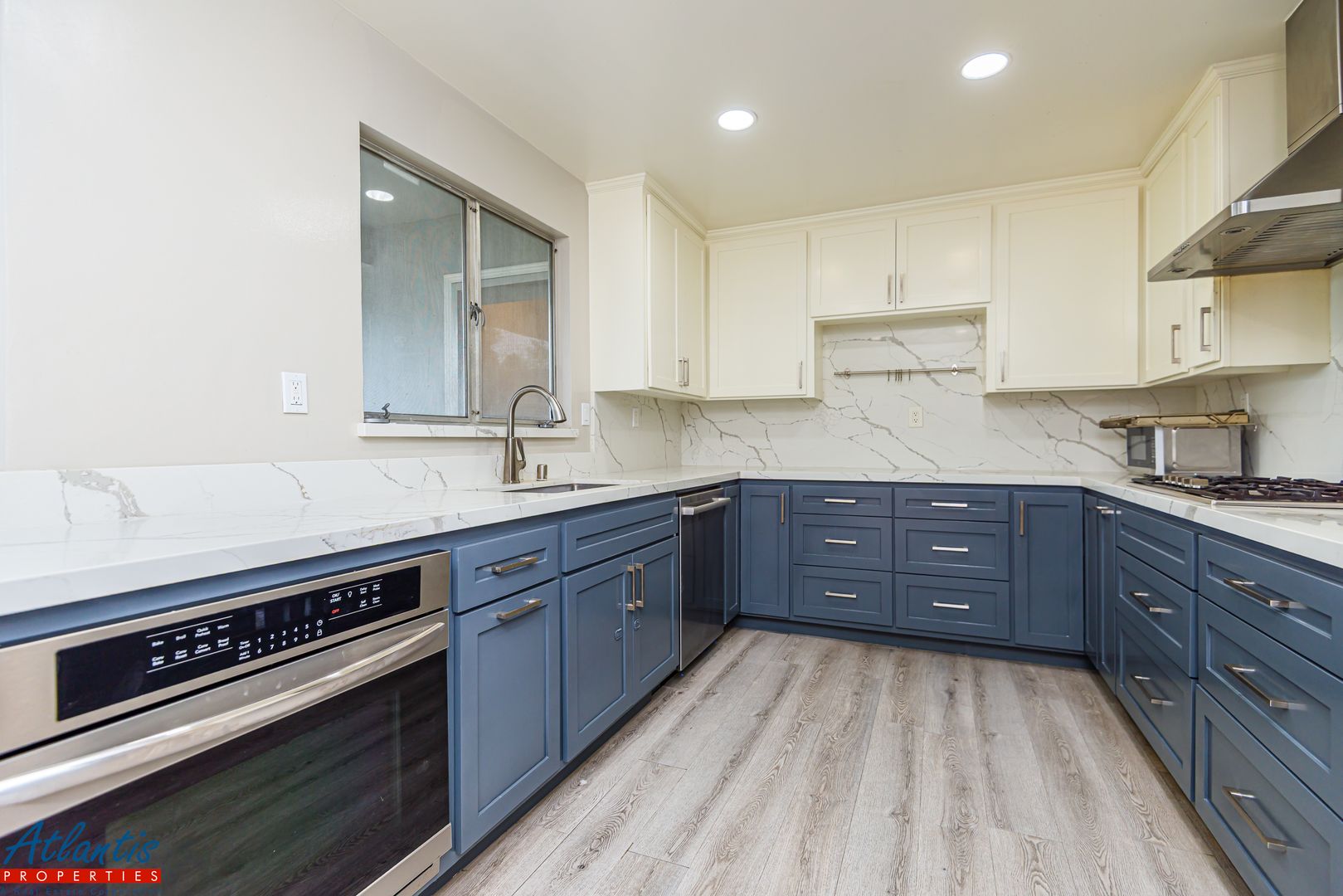 - Remodeled Kitchen Features Luxury Vinyl Plank Flooring, Shaker Cabinets, Quartz Counters & Stainless Steel Appliances: Refrigerator, Gas Cook-Top, Built-In Oven, Dishwasher, Microwave (Microwave Not Warrantied)