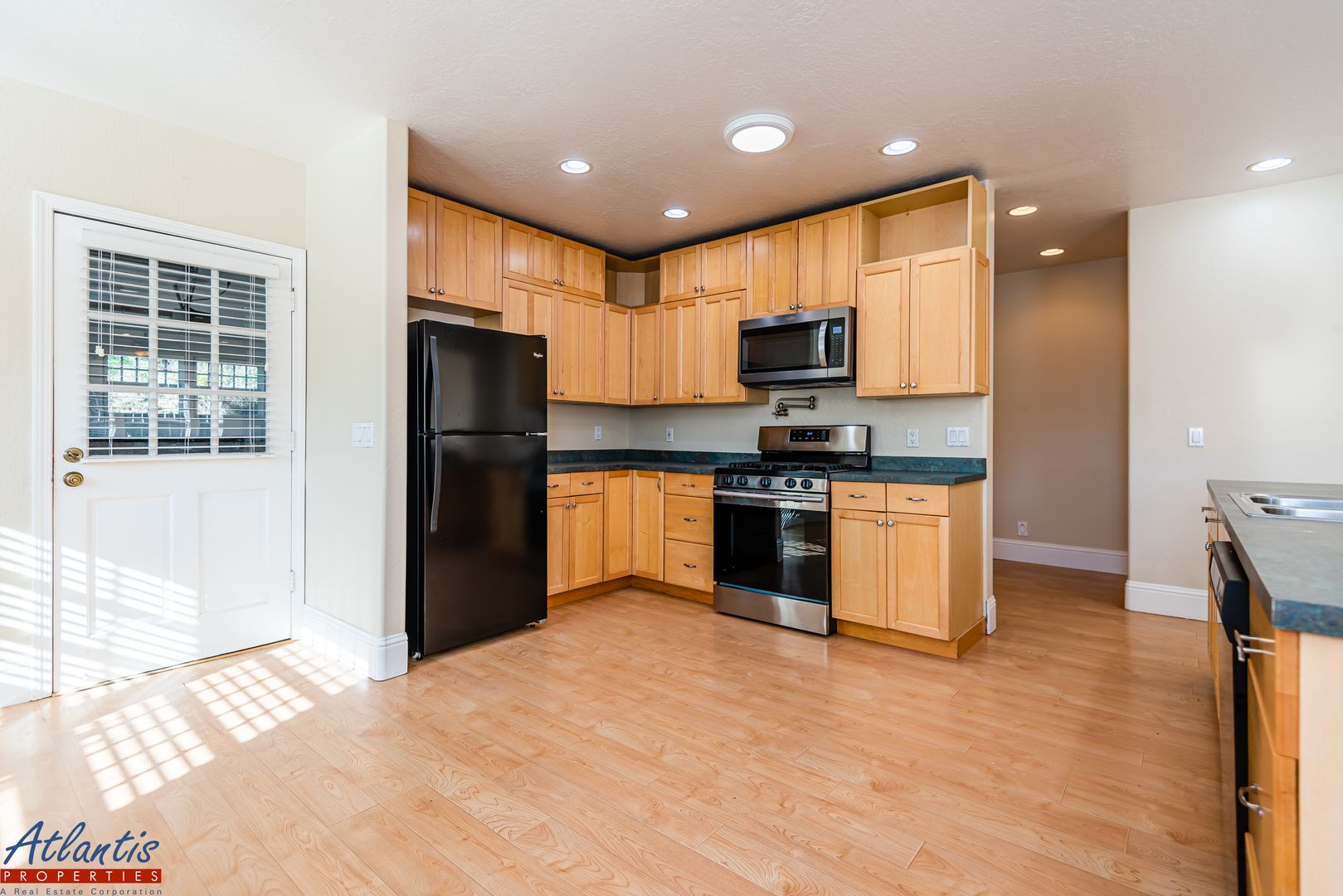 - Eat-In Kitchen Includes Wood Cabinetry, Refrigerator, Gas Range/Oven, Dishwasher, Built-In Microwave & Garbage Disposal