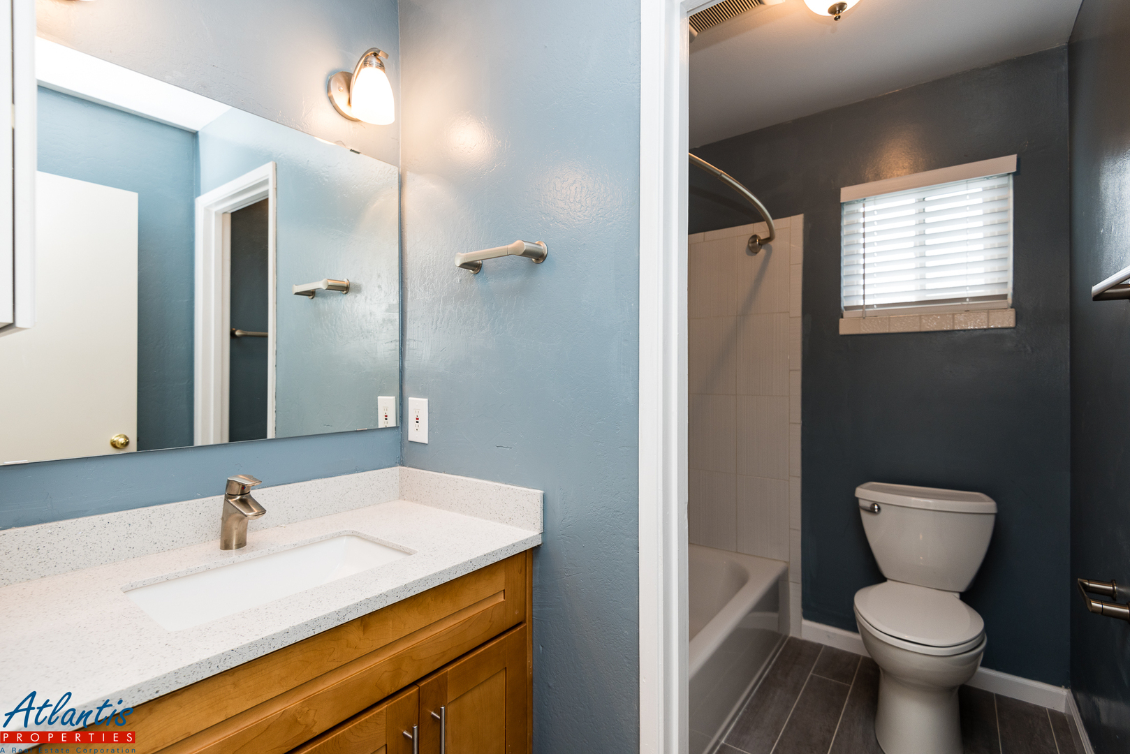 - Remodeled Bathroom w/ Tile Flooring Vanity w/ Quartz Counter & Tile Shower/Tub Enclosure