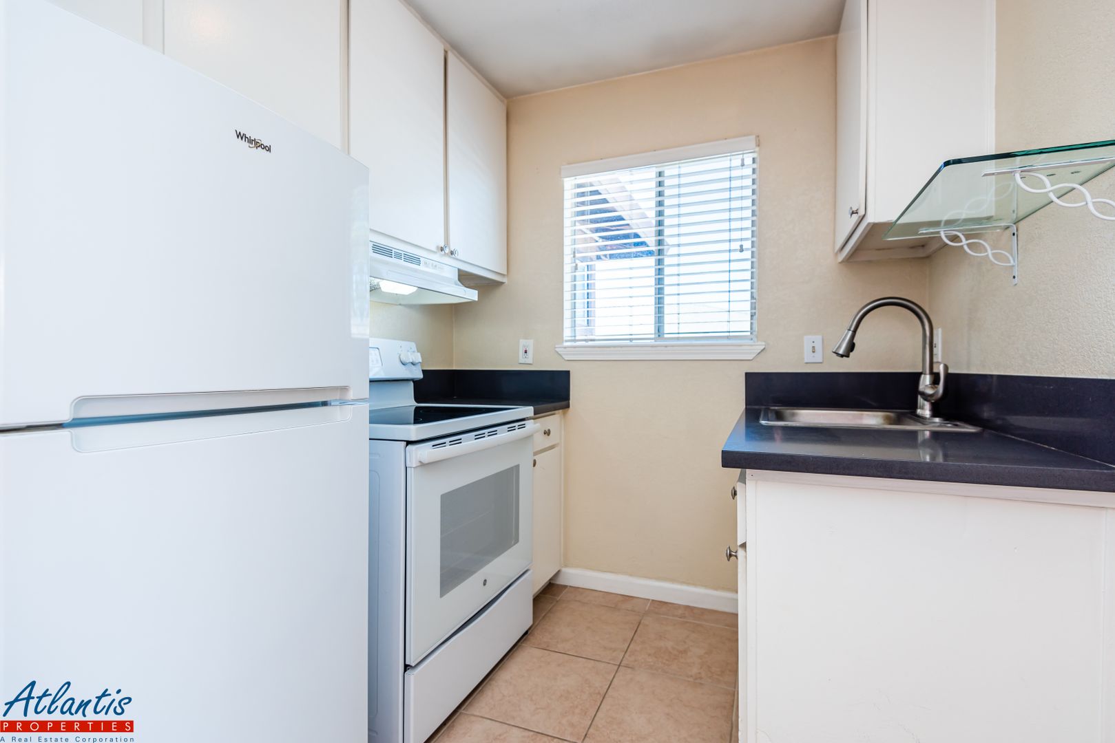 - Kitchen w/ Sleek Quartz Counters, Tile Flooring, Refrigerator, Electric Range/Oven & Garbage Disposal