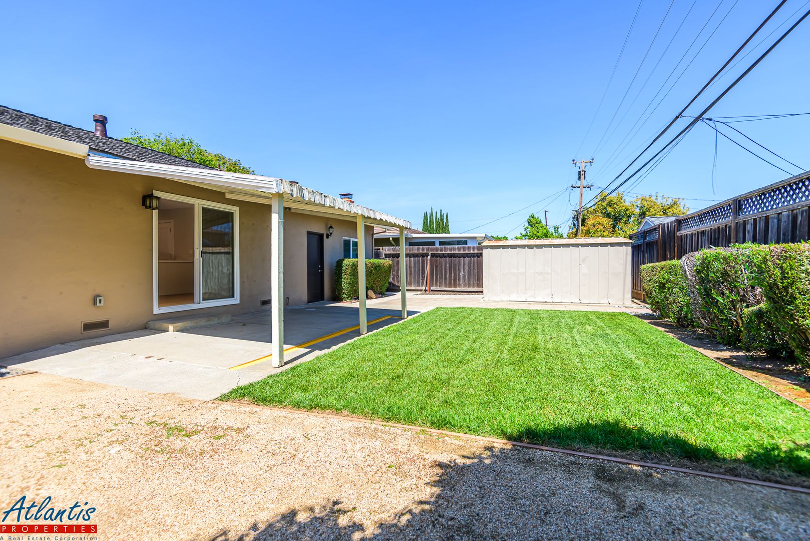 - Private Backyard w/ Covered Patio, Lush Lawn, Orange Tree & Storage Shed