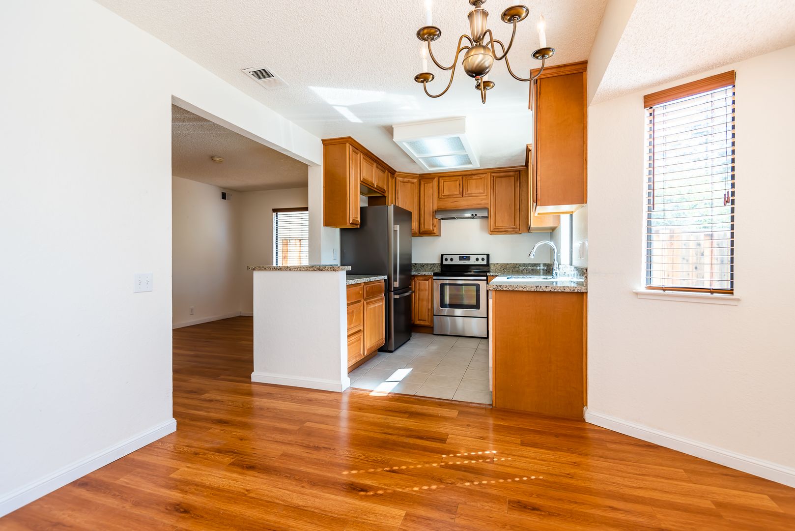 - Home Features Hardwood Laminate Flooring, New Interior Paint, Double-Pane Windows, 2" Blinds & Updated Kitchen