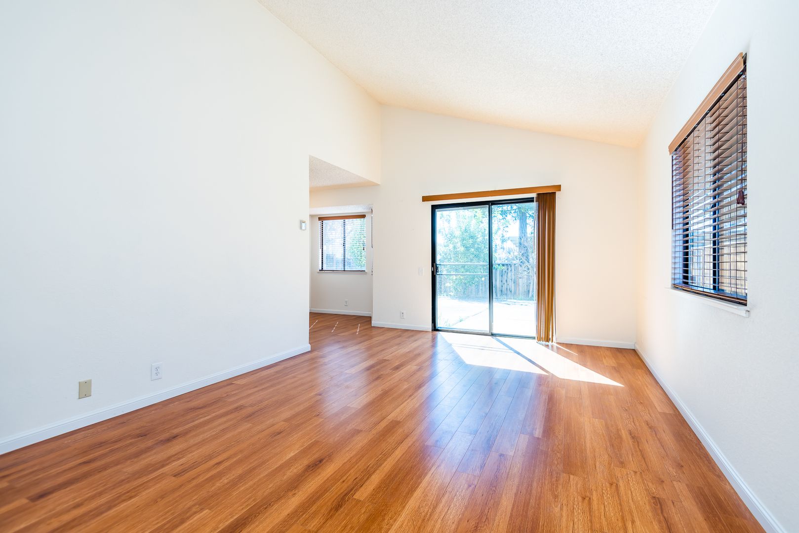 - Living Room w/ Vaulted Ceiling & Access To Backyard/Patio