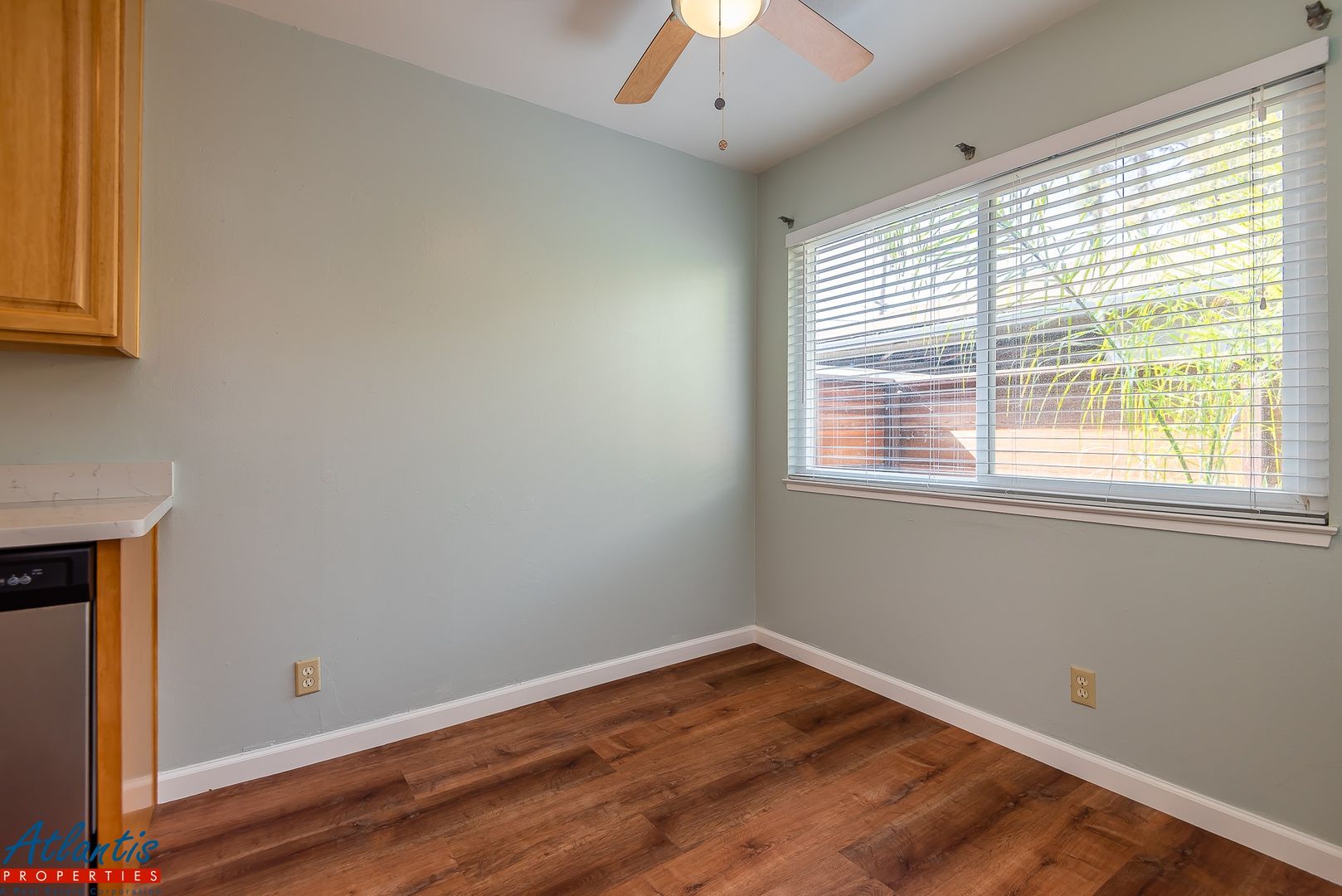 - Eat-In Kitchen Includes Granite Counters, Ceiling Fan, Refrigerator, Electric Range/Oven, Dishwasher, Built-In Microwave & Garbage Disposal