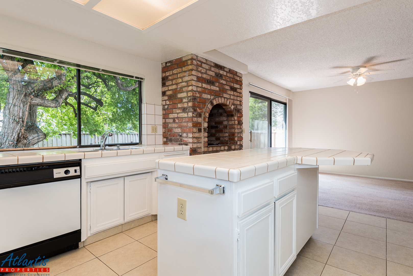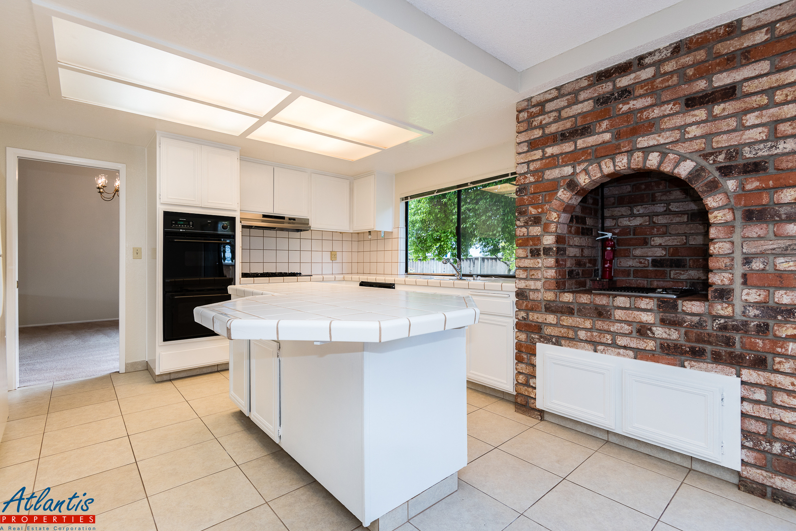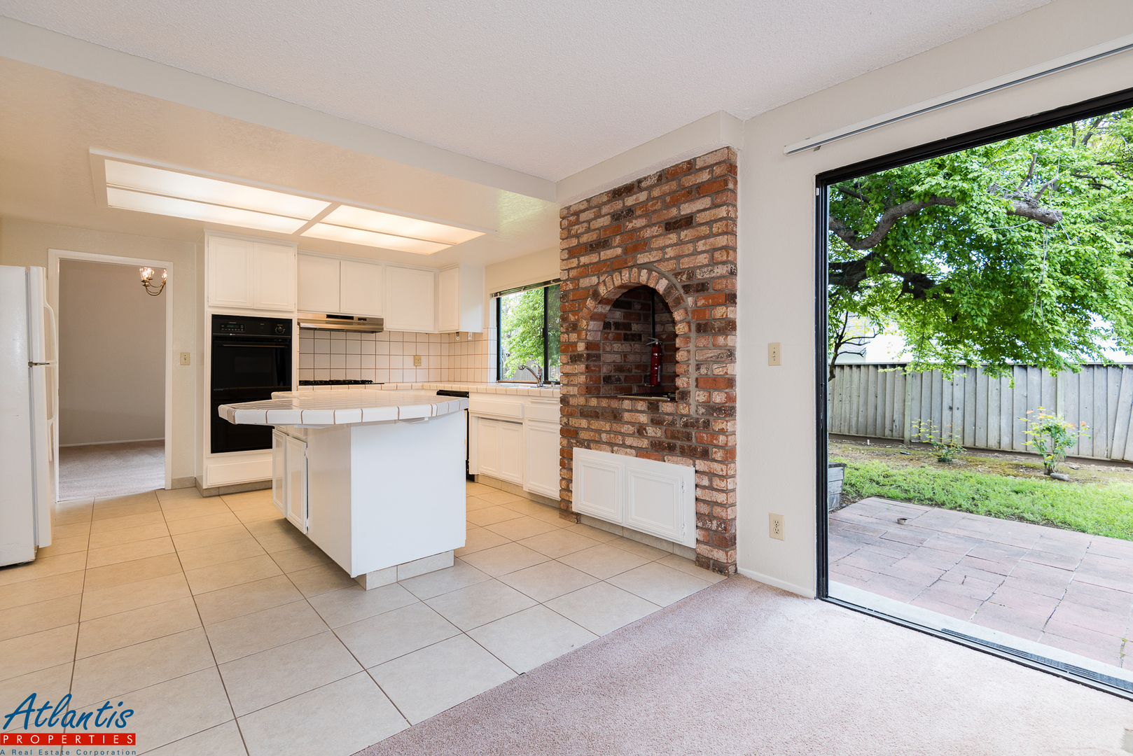 - Kitchen Features Tile Counters, Tile Flooring, Refrigerator, Gas Cook-Top, Built-In Oven, & Dishwasher