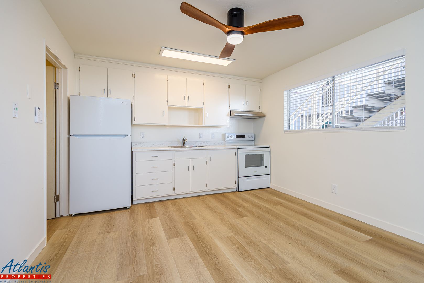 - Kitchen Includes Updated Counters, Brand New Stainless Steel Sink, Remote Controlled Ceiling Fan & New Appliances: Refrigerator, Electric Range/Oven
