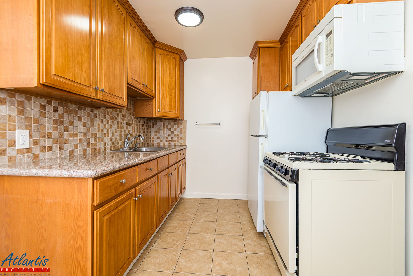 - Eat-In Kitchen Includes Tile Flooring, Granite Counters, Tile Backsplash, Refrigerator, Gas Range/Oven & Built-In Microwave