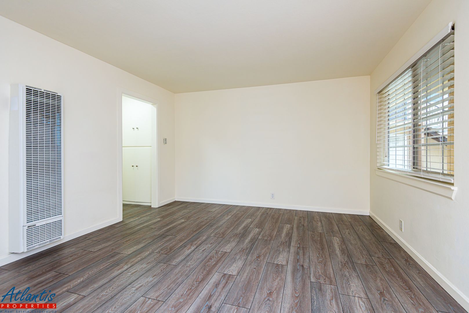 - Unit Features Hardwood Laminate Flooring, New Interior Paint, Double-Pane Windows, 2" Blinds & Air Conditioning (Bedroom)