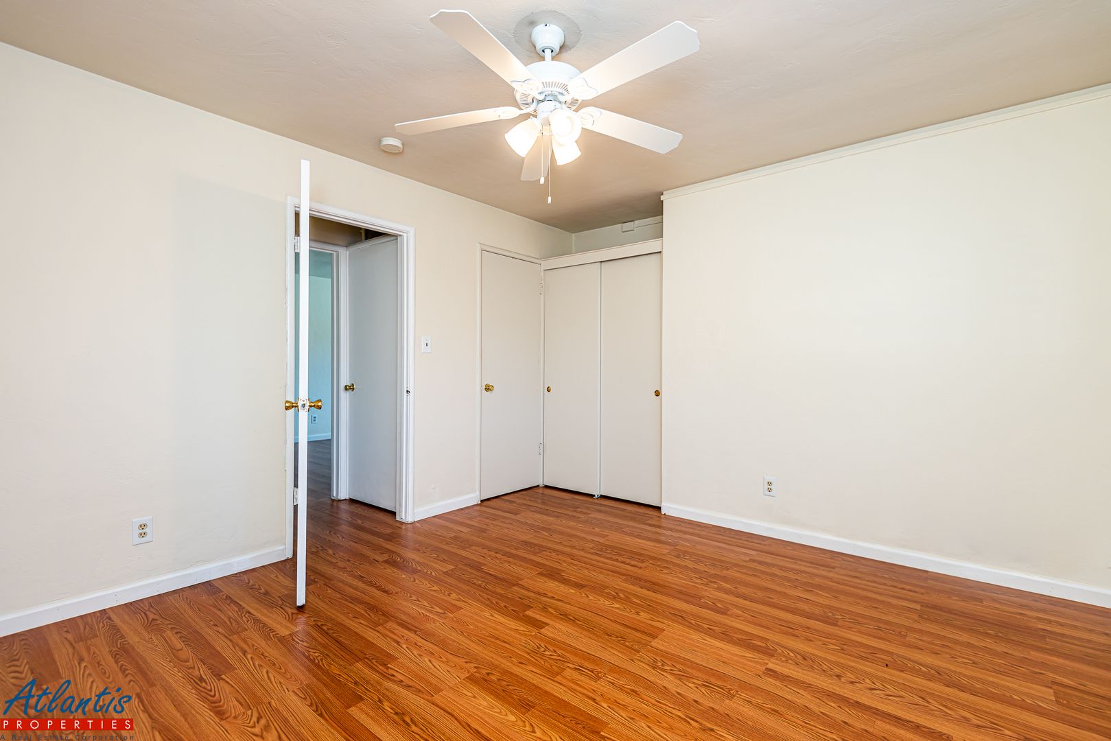 - Unit Features Hardwood Laminate Flooring, Double-Pane Windows, 2" Blinds & Ceiling Fans