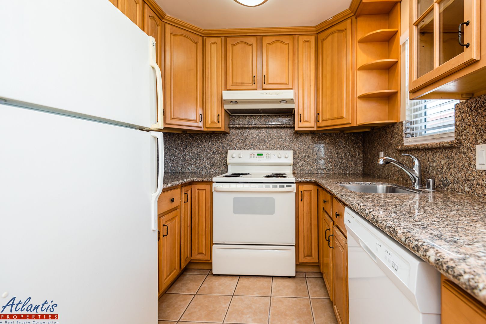 - Eat-In Kitchen Features Tile Flooring, Granite Counters, Refrigerator, Electric Range/Oven, Dishwasher, Garbage Disposal & Ceiling Fan